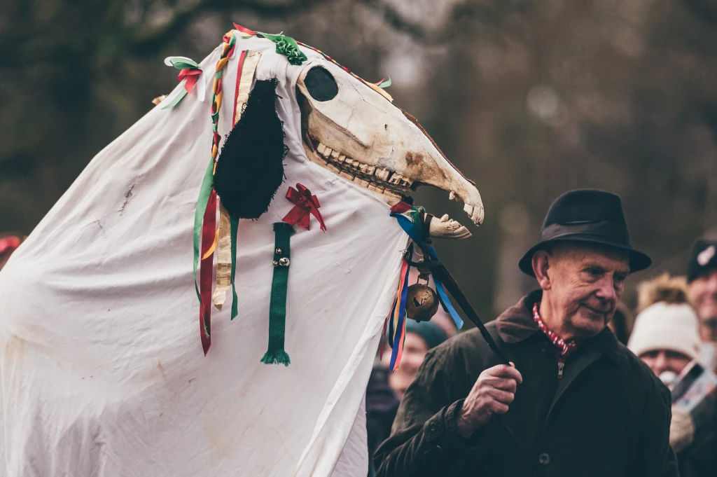These unusual ancient Welsh winter traditions include singing, dancing, and a horse’s skull!