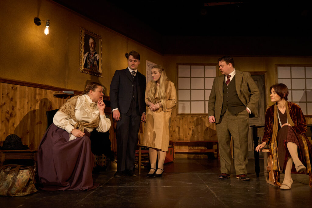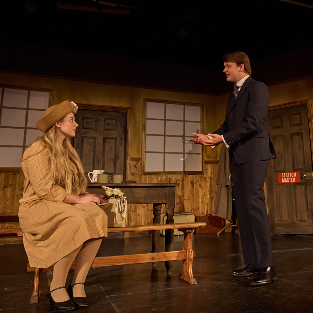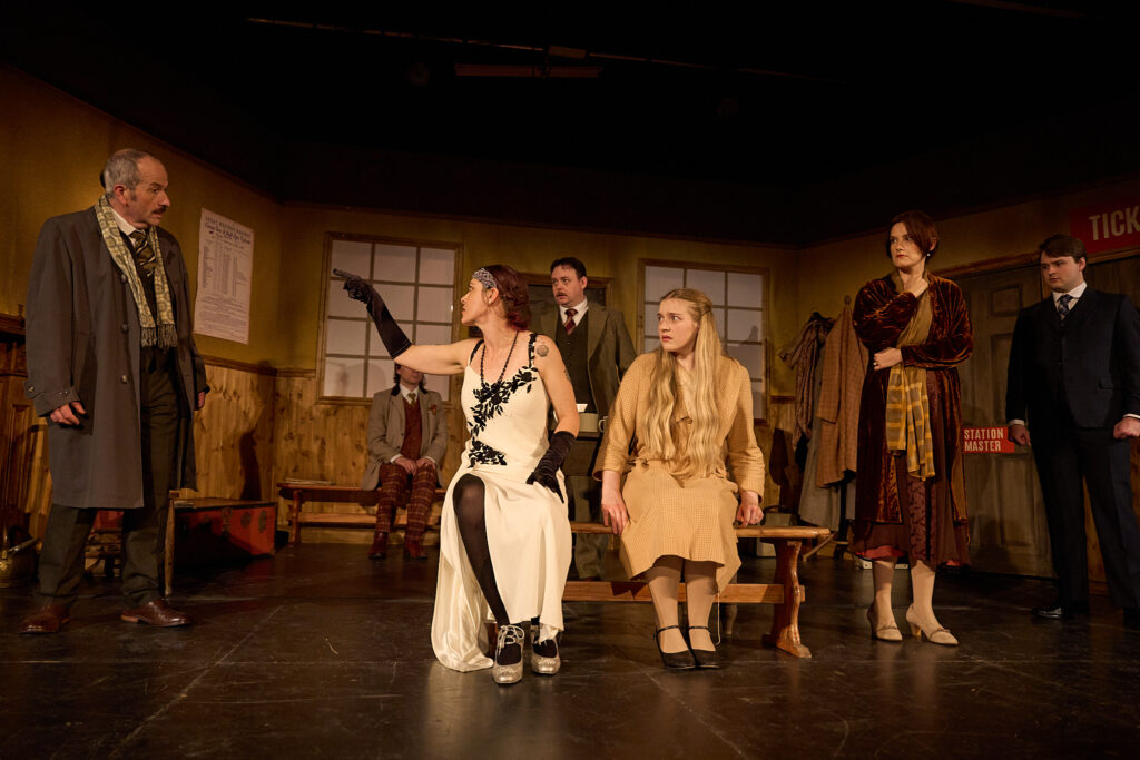 The ten-strong cast brings Ridley’s group of travellers to life. Alex Wilson delivers a convincing turn as the station master, Saul Hodgkin, while Laura Day and Andrew Moreton capture the fractious energy between Elsie and Richard Winthrop. Jacob Griffiths and Lauren Jenkins shine as newlyweds Charles and Peggy Murdock, bringing warmth, with Sally Mathias providing comic brilliance as the unshakeable Miss Bourne. Joshua Ogle’s Teddie Deakin adds a mischievous edge, and Kelly Thompson as Julia Price grounds the chaos with poise and quiet tension. Chris Glynn, as John Sterling, carefully commands the stage, and Ian Court as Jackson completes the cast with an authority that anchors the play’s final moments.